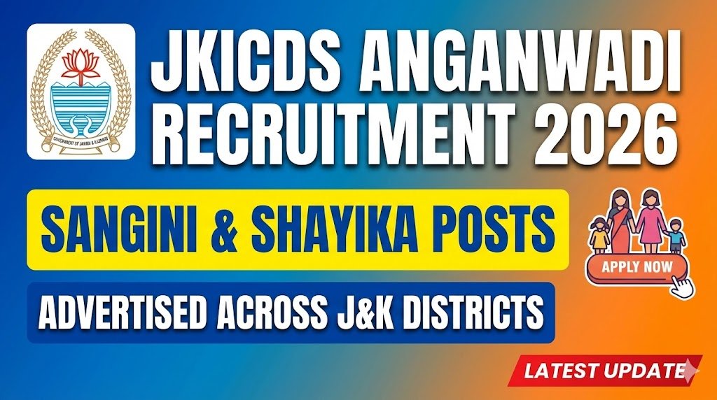 JKICDS Anganwadi Recruitment 2026: Jammu and Kashmir Integrated Child Development Services (JKICDS) has released multiple recruitment advertisements for the posts of Sanginis (Anganwadi Workers) and Shayikas (Anganwadi Helpers) under various Poshan Projects across Jammu & Kashmir.